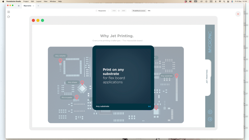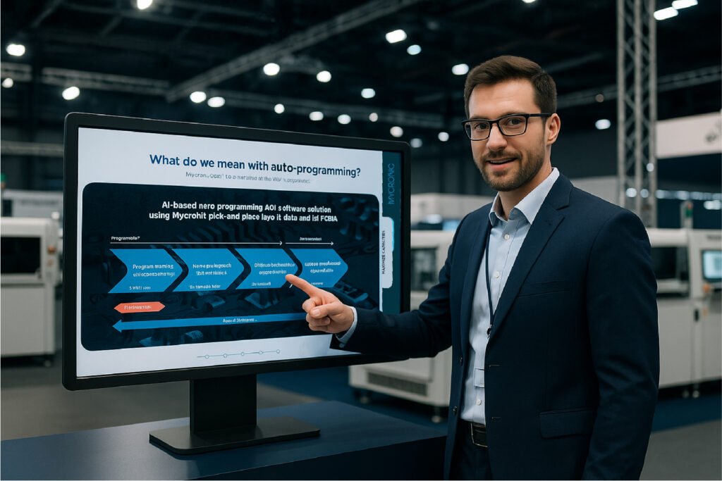 Inför elektronikmässan Productronica i München behövde Mycronic ett tydligt och engagerande sätt att presentera sin avancerade SMT-linje. Lösningen blev en interaktiv 65-tums touchskärm som monterades i montern och användes av säljare och experter i realtid när de berättade om maskiner, processer och värdeskapande.